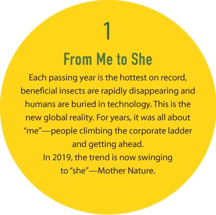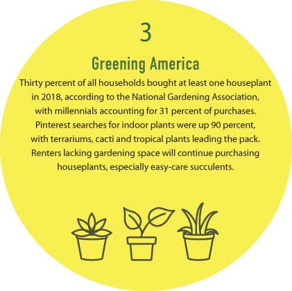 With the planet in peril and the majority of American adults and children sitting in front of computers all day, interacting with nature in friendlier ways is a big priority this year, according to the 2019 Garden Trends Report from Garden Media. Here are other trends from the report.