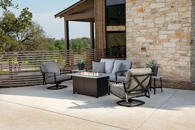 Seating, shade elements, and patio heaters are among the most popular categories for outdoor essentials. “Fire elements are what bring people outside in the shoulder seasons,” Tom says, noting that a good heating solution can stretch patio season on both ends of summer.