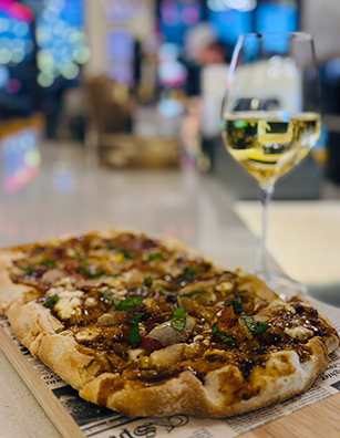 In the golf bays, the Hot Honey Pear Pizza delivers a satisfying balance of sweetness and warmth, pairing easily with a thoughtfully selected white wine. Nearby, a group of firefighters practices their swings, a reminder that this is a space designed for all skill levels and backgrounds. The technology holds up, the atmosphere remains relaxed, and the experience feels inclusive rather than exclusive.