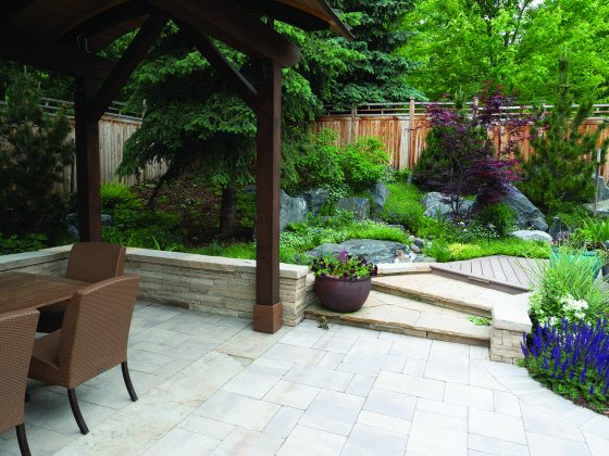 Available in myriad sizes and shapes, concrete pavers create excellent mosaic patios and durable footpaths. And since they’re often interlocking, they’re very easy to work with, Hartman says. Paver manufacturers also sell preassembled kits to create freestanding walls, pillars and fire pits—projects that would be much more difficult, or even impossible, with sandstone.