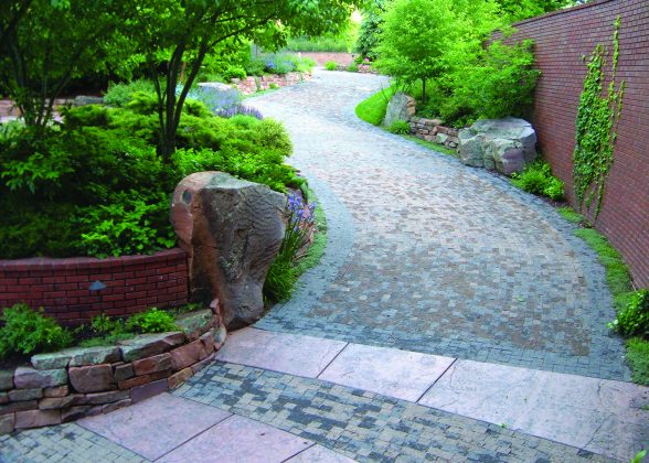 “Stone is expensive,” says Paul Hartman of Changing Landscapes, who explains that manmade concrete products are durable and much better looking than some would expect. “For a more contemporary look, new block walls have some interesting lines to them, or you can go with a tumbled wall. Basically, these are concrete blocks that have been tumbled to break up the sharp edges, so the wall looks like it’s been there a while.”