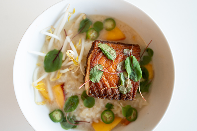 Back in town, the desire to create community through food moved naturally from the racecourse to a brick-and-mortar space. With the help of Chef Aaron Thebault, Skratch Labs Table developed a menu that performs a careful balancing act: meals that are nutrient-dense, flavorful, quick, and highly portable—appealing to athletes and the broader community alike.