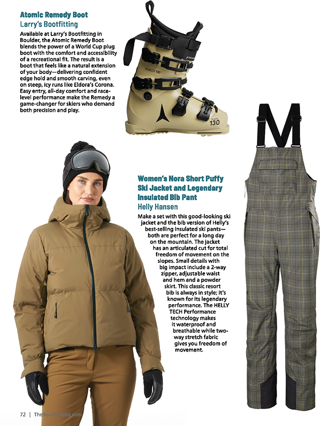 On the slopes, that same balance of durability and performance is the obsession at Larry’s Bootfitting in Boulder. Co-owner Dan Vardamis explains: “While we certainly want folks to be comfortable in their boots, we also want to get people in boots that make them better skiers.”