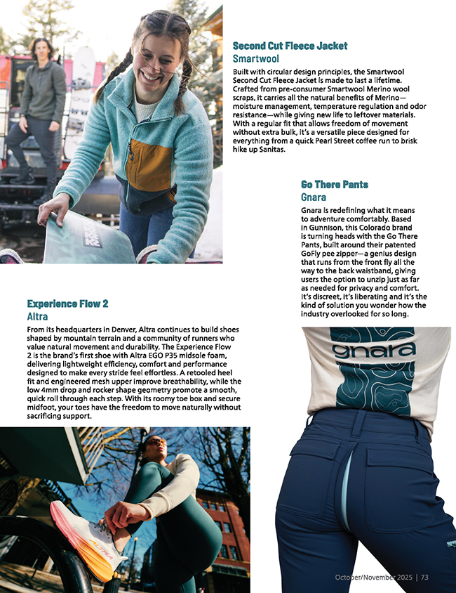 These are just three of the many brands shaped by this place, each driven by the same idea: The outdoors isn’t just a backdrop. It’s the bar we have to meet—and beat—every day. This Colorado gear guide celebrates the makers, designers and experts who are reimagining what it means to play outside here, and everywhere our mountains inspire us to go.