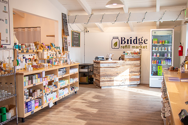 That philosophy informs everything from the store’s open, welcoming design to its curated selection of organic foods and nontoxic household products. And the impact adds up. From July 2024 through December 2025, the Bridge community saved 23,433 containers from the landfill.