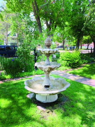 Tulips, allium and violets fill the front yard and boulevard garden in spring. Perennials and herbs arrive in summer: geraniums, sweet woodruff, catmint, lavender, oregano, yarrow, feverfew, love-in-a-mist, rose campion and lemon balm. The couple’s many birdbaths attract feathered friends year-round.