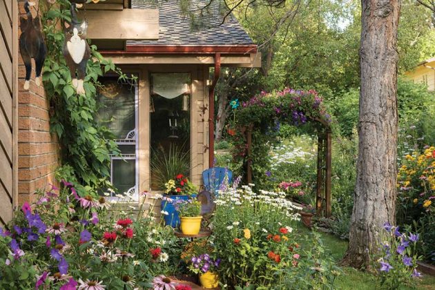 And boy, does she have flowers. Her Boulder cottage garden is awash in perennials and potted annuals of all shapes, sizes and colors. There’s crocosmia (her favorite), feverfew, yarrow, hosta, clematis, crocus, poppies, alyssum, tulips, impatiens, columbines, geraniums, penstemons, trumpet vine, bee balm—the list is endless. She’s tended the Boulder plot for almost 20 years, and her green thumb is evident in every square inch. But the garden wasn’t always as prolific and lush.
