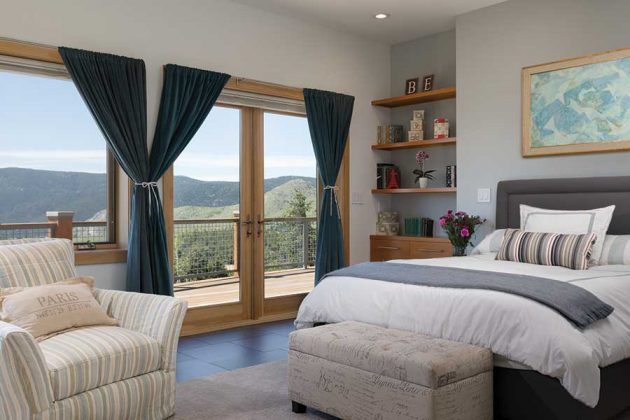 She and Barrett also designed the bedroom around its windows to capture the stunning vistas offered by the high vantage point. Before the house burned down, I didnt have city lights in my view and I always wanted them, OConor says. To me, thats like the ocean. So now, I can sit in bed and see the city lights, the back of the Flatirons and the weather moving over the mountains.