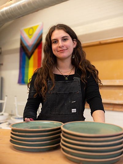 Jamie went on to study industrial design, which led to a job making furniture. Woodworking full time, however, Jamie found that she lacked time and energy for her own art. To spark her creativity, she started ceramics classes at Groundworks Art Lab—now she teaches there, in addition to serving as the assistant manager, and focuses her own work on functional ceramics.