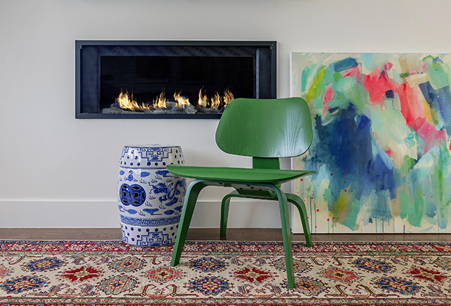 Local Boulder artist Sarah Kinn’s abstract watercolors hang above the bed, and artist Kelly Degnan—also local—is represented near the bedroom fireplace pulling the colors of the room into harmony. “I always want a home to represent the client, not me,” Rhode says. “Their art, their heirlooms, their travels—those are the stories worth telling.”