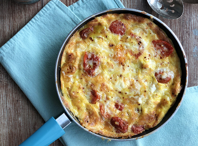 Burst Tomato Frittata with Basil Oil