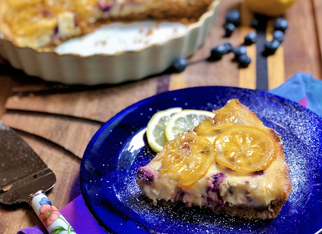 Roasted Blueberry Cheesecake with Candied Lemons