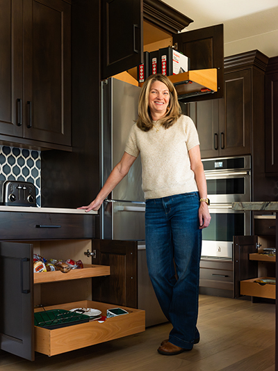 For Lynn Traxler, 2021 was an incredibly difficult year. She suffered through a sudden family loss, and just a few months later, the Marshall Fire took her home. Lynn moved her family in with her father, which put her in the position of caregiving for both her children and an aging parent. When it came time to design her new kitchen, Traxler was eager to finally do something fun. She even took a friend along—but their outing wasn’t the bright spot Lynn had been hoping for. “The people who designed the kitchen cabinets were not very nice to me,” she says. “There was decision overload, for sure.” She went along with the designer’s suggestions, but when she moved into the new house, the kitchen wasn’t as functional as it could be.