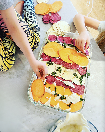 This approach extends beyond just cooking. The Emich family’s gratitude practice includes everyone from kids to grandparents, “all moving and breathing and connecting and enjoying together,” as they put it.